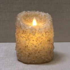 Flameless Pillar Candle – Mirage Gold – Aegean Blue – 5in X 3in