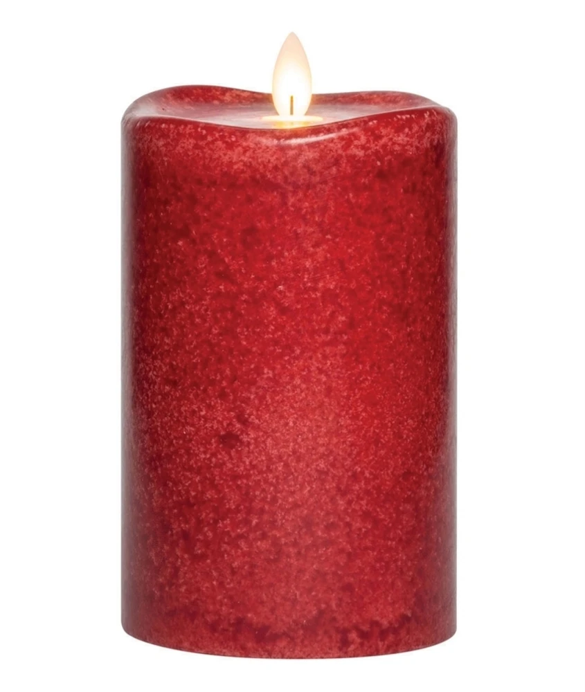 Battery Operated 6in Chili Pillar Candle – Mirage Gold LED Candle — Enjoy the beauty of a real candle without any of the mess. Mirage pillars capture the essence of a real wick burning candle, emulating the dancing nature of the flame of a real wax candle. Mirage candles are made with 100% refined paraffin wax, it looks so incredibly realistic, you will try to put it out!