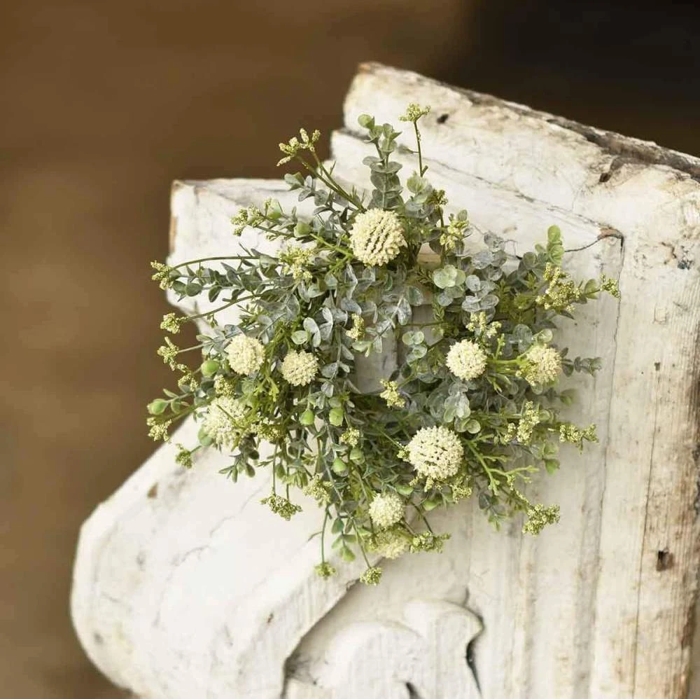 Lighten up your home’s décor with a Garden Bliss Cream Floral Candle Ring from Christmas Tree Hill. Featuring rich greenery with cream-colored flowers, the candle ring is the perfect choice for spring and summer displays. The candle ring is made of all artificial materials and has an inner diameter of three inches, so it fits on most jar candles. The outer diameter of the ring is 12 inches, helping to fill medium-to-large areas for effortless decorating.