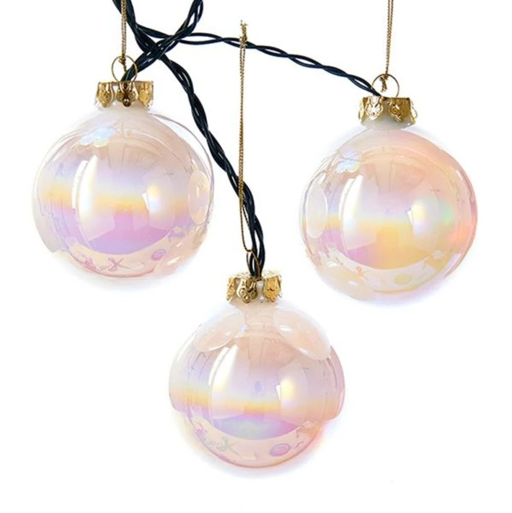 This 6-light 80MM LED glass ball light set is a bright, festive way to add to the lighting of your holiday décor. Each of the 6 lights in this indoor-only set has a bright, colorful round glass design, and has green wire, and uses 4-color LED bulbs for a festive glow.