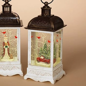 Decorative Lantern Snow Globe – Red Truck with Cardinals