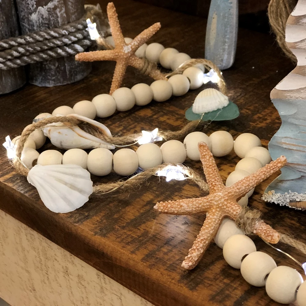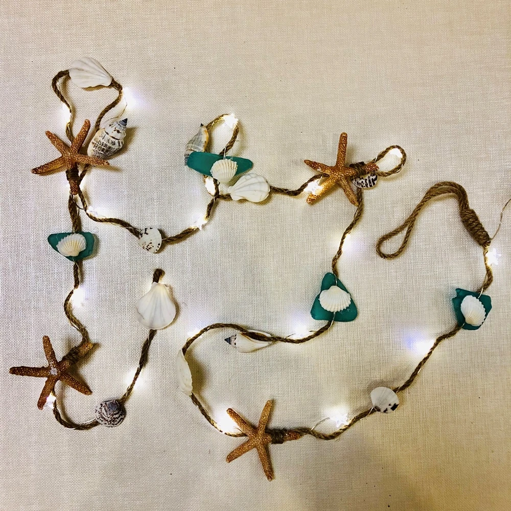 - Material: Shells, Jute, Resin Starfish, Sea Glass, Wire LED Light String